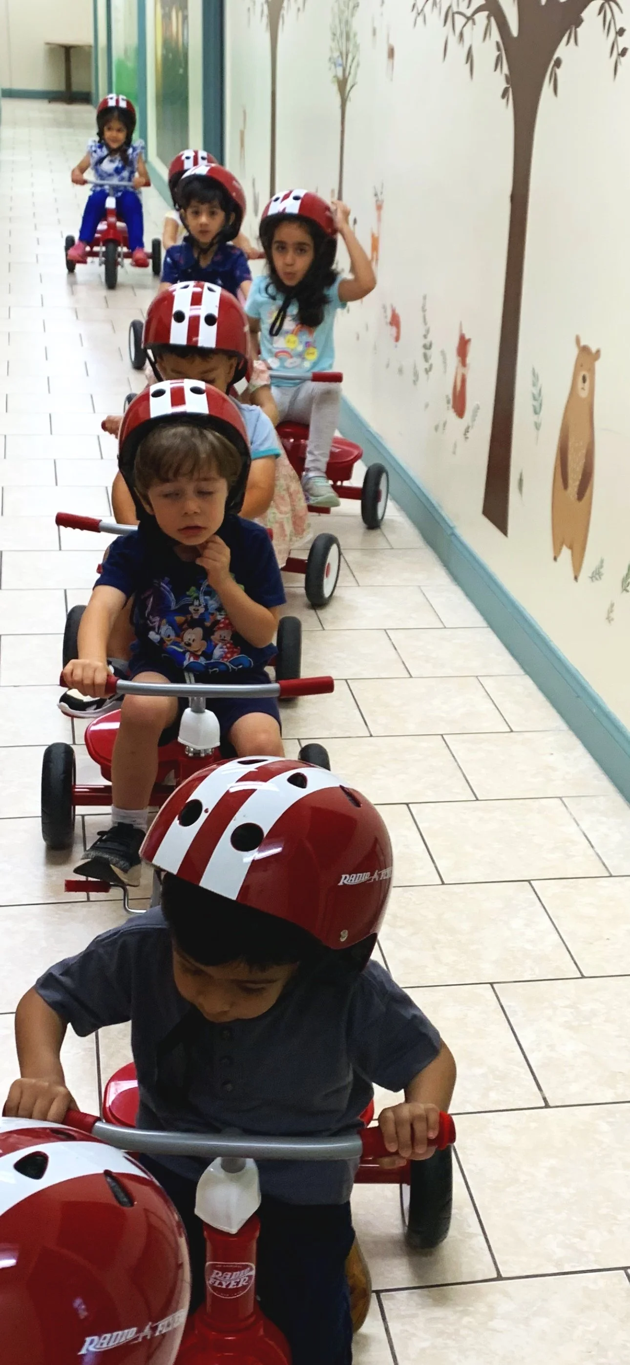Physical activity is an important component of every child’s learning experience at Serenity. The children spend part of each day in the school’s gym or Central Park. Our gym is equipped with a climbing wall, tricycles, a rope climber, rocking boats, trampolines, a variety of sports equipment and large hollow blocks for building structures. In Central Park, the children have the opportunity to explore the natural environment and observe wildlife.