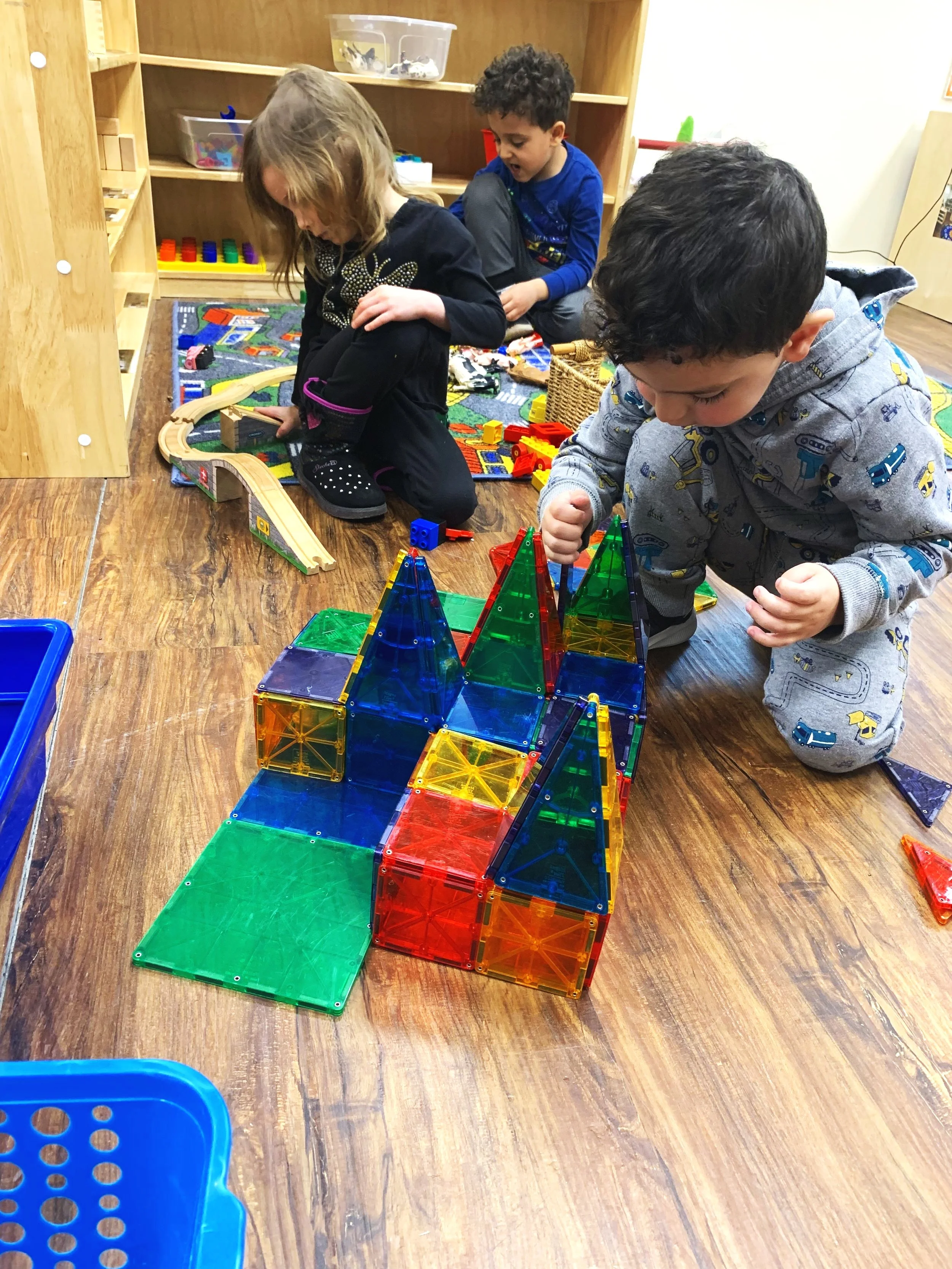 Mathematical concepts are integral to the curriculum at all age levels. Through the manipulation and exploration of a wide range of materials, children gain an understanding of counting and number sense, basic addition and subtraction, sorting, patterning, comparing, sequencing, classifying and estimating. Teachers use charts, graphs, books and songs to support the children's math skills. Conceptual learning takes place in the context of play through activities such as cooking, counting games, block building and group meetings. One of our goals is to help children think mathematically and use language to describe, reason, and predict ideas and solutions.