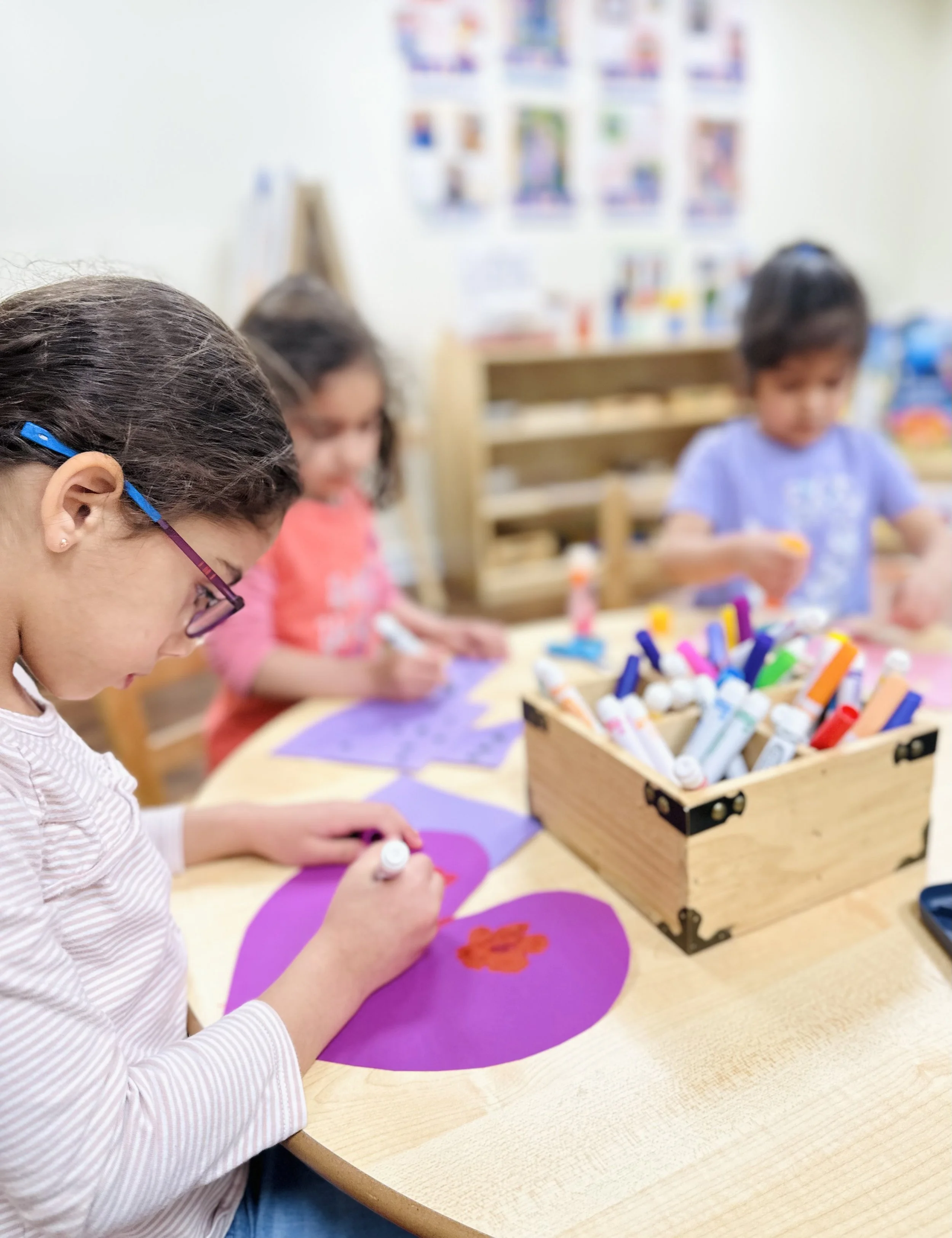 The children are exposed to rich language and literacy experiences every day. The classrooms are intentionally designed as print and symbol-rich environments. Through listening to stories, the dramatization of stories, book making, and dictations, the children develop many skills including oral language skills, the connection between the spoken and written word, phonological awareness, alphabetic knowledge and conventions of print.